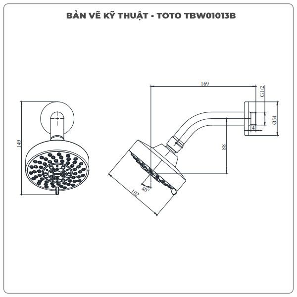 Thông số kỹ thuật bát sen gắn tường TOTO TBW01013B