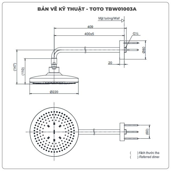 Thông số kỹ thuật bát sen gắn tường TOTO TBW01003A