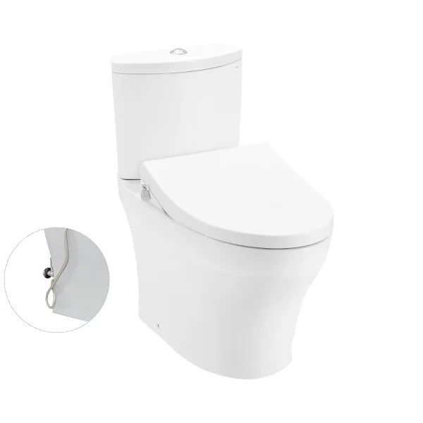 - Nắp bồn cầu được tích hợp vòi rửa nước lạnh với 2 chức năng rửa trước và rửa sau