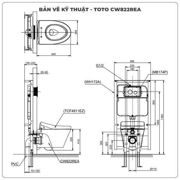 Thông số kỹ thuật bồn cầu treo tường TOTO CW822REA/TCF4911EZ
