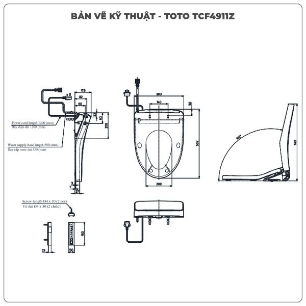 Thông số kỹ thuật nắp bồn cầu thông minh TOTO WASHLET TCF4911Z