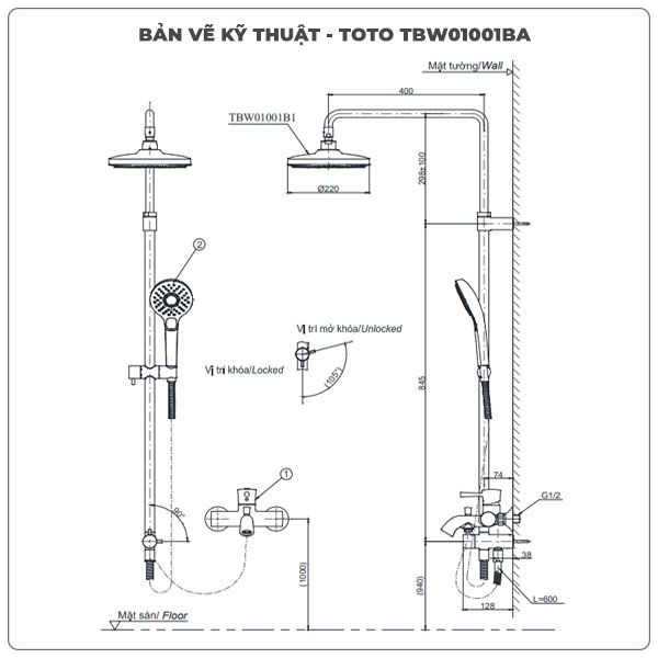 Thông số kỹ thuật sen cây TOTO TBW01001BA/TBV03429V/TBW02006A