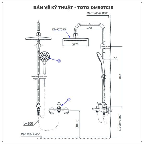 Thông số kỹ thuật sen cây TOTO DM907C1S/TBS01302V/DGH108ZR