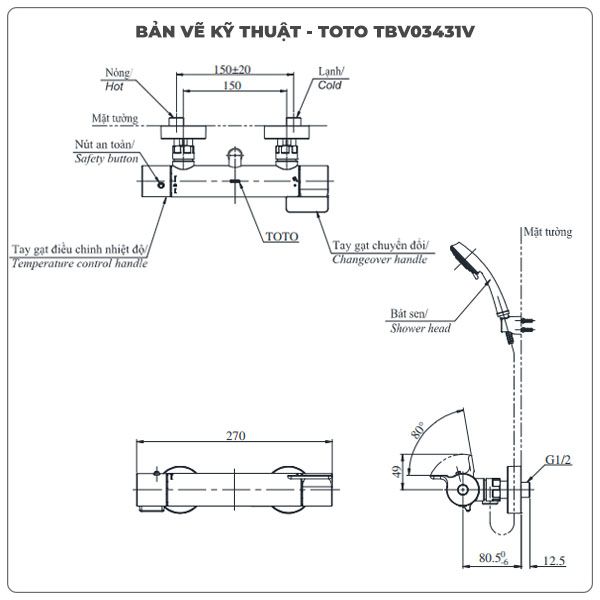 Thông số kỹ thuật sen tắm nhiệt độ TOTO TBV03431V/TBW01010A