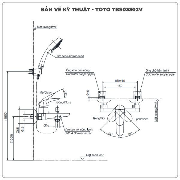 Thông số kỹ thuật sen tắm nóng lạnh TOTO TBS03302V/TBW02017A