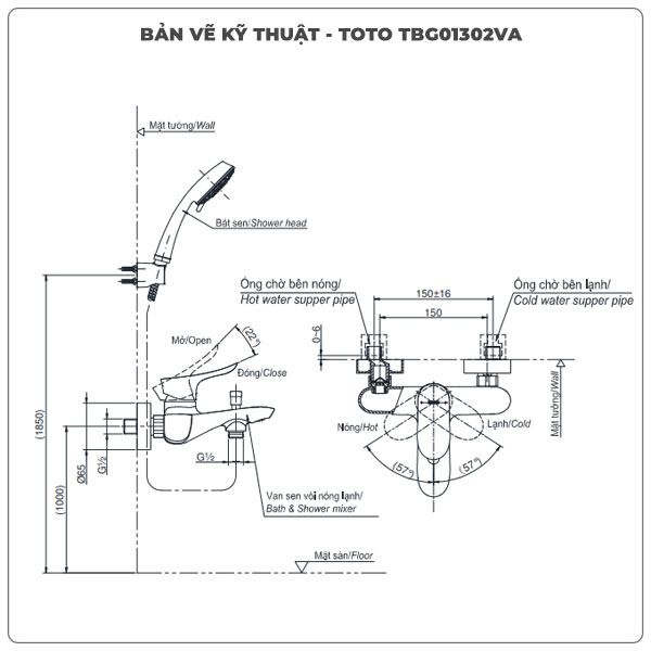 Thông số kỹ thuật sen tắm nóng lạnh TOTO TBG01302VA/TBW01010A