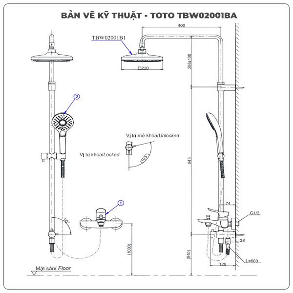 Thông số kỹ thuật thân sen cây TOTO TBW02001BA