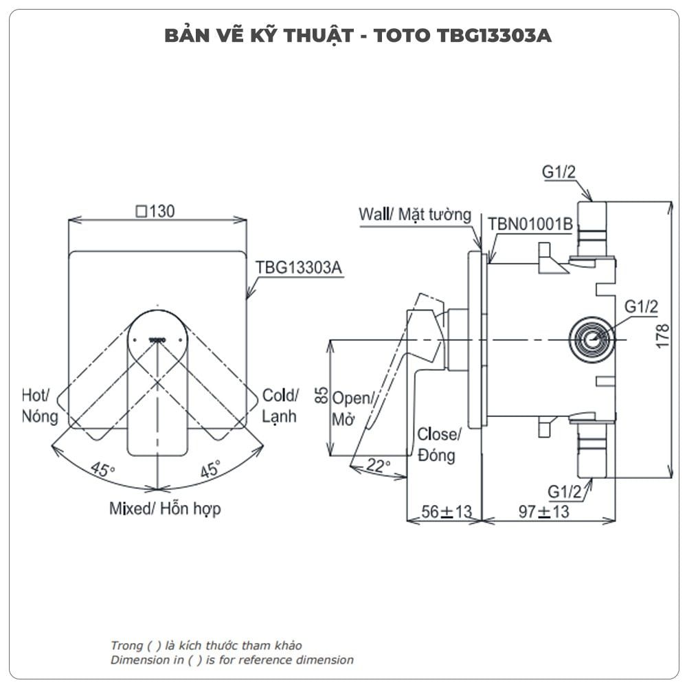 Thông số kỹ thuật van âm tường TOTO TBG13303A/TBN01001B