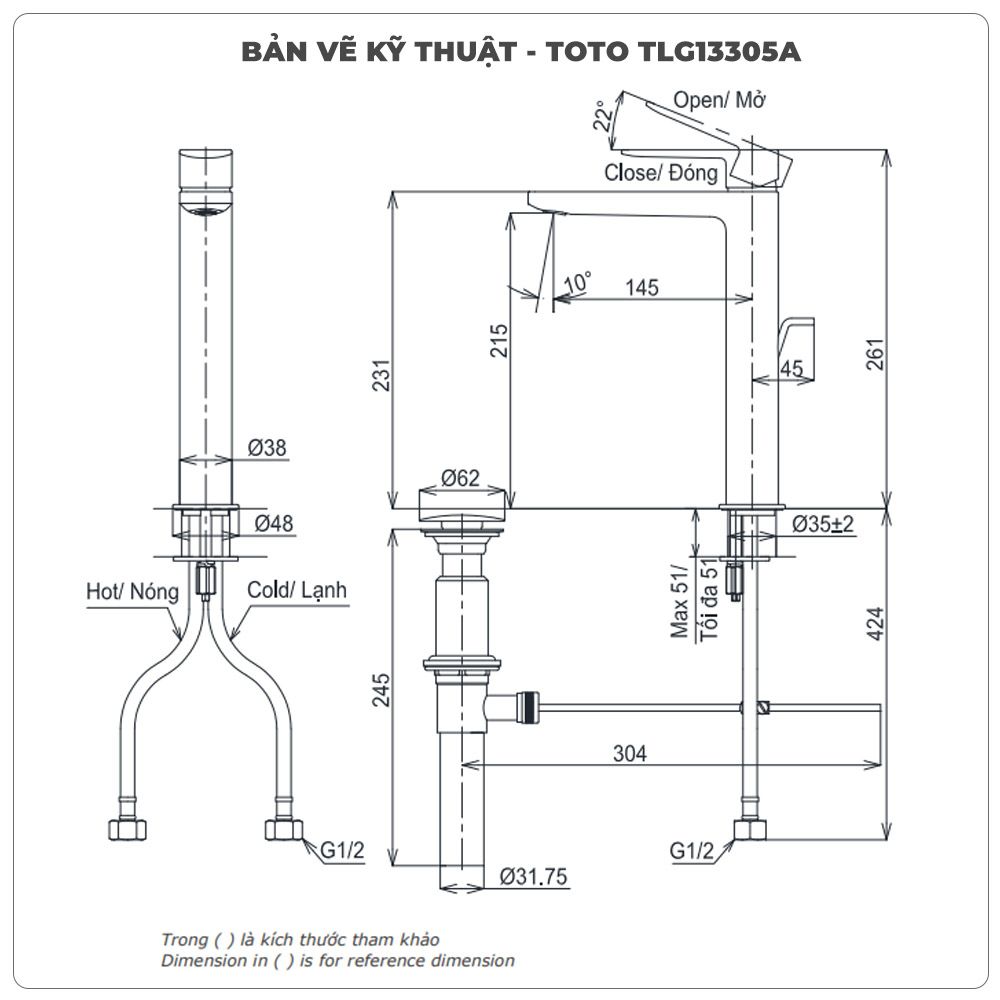 Thông số kỹ thuật vòi lavabo TOTO TLG13305A