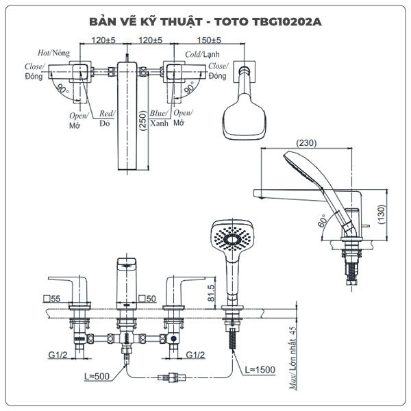 Thông số kỹ thuật vòi sen xả bồn tắm TOTO TBG10202A