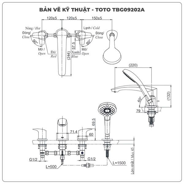 Thông số kỹ thuật vòi sen xả bồn tắm TOTO TBG09202A