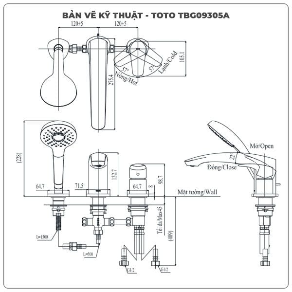 Thông số kỹ thuật vòi xả bồn tắm TOTO TBG09305AA